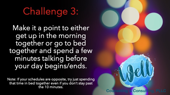 Challenge 3 Posted bysydneylucasFebruary 7, 2020February 3, 2020Posted inUncategorizedTags:5 love languages, couples counseling, marriage, valentines day Share this:More Click to email a link to a friend (Opens in new window) Email Click to print (Opens in new window) Print Like Loading... Related